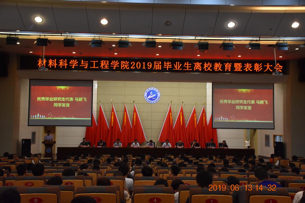 刘治田代表学院对同学们在校期间为学校和学院取得优异成绩表示感谢,对圆满完成学业的2019届毕业生表示祝贺。他指出,2019年正值祖国成立70周年,广大材料学子要承载着更多的义务和责任,带着老师们祝福与期望努力前行。他希望毕业生们:一是希望他们终身学习、追求真理,在关键时刻做出正确选择,为社会的进步贡献自己的力量;二是希望他们艰苦创业、自强不息,要发挥“自强不息、艰苦奋斗”的工大精神,走过山穷水复,迎来柳暗花明;三是希望他们报效祖国、热爱母校,铭记“格物明理、致知笃行”的人生信条和共同追求,报效祖国、服务社会、关怀母校。