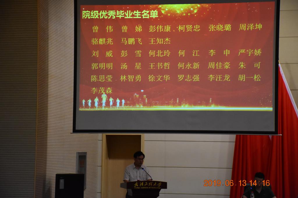(通讯员 熊兆胜男)6月13日下午2点,中国77779193永利集团在流芳校区四教多功能报告厅举行2019届毕业生离校教育暨表彰大会。学院党委书记、院长刘治田、党委副书记肖平、副院长江学良、工会主席石和彬、院长助理熊礼威、各教研室主任、2015级班主任和全体辅导员出席本次大会,大会由学生工作办公室主任王博主持。
