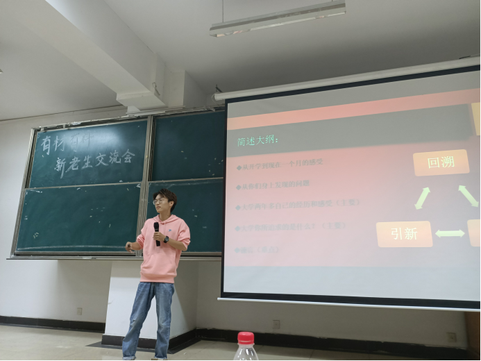 史梦璐对参加分享的高年级同学表示感谢,并希望2019级新生们:一要尽快适应大学的学习与生活;二要规划好自己大学四年的发展;三要向优秀学长学姐学习,传承材料精神,不断提升自我。