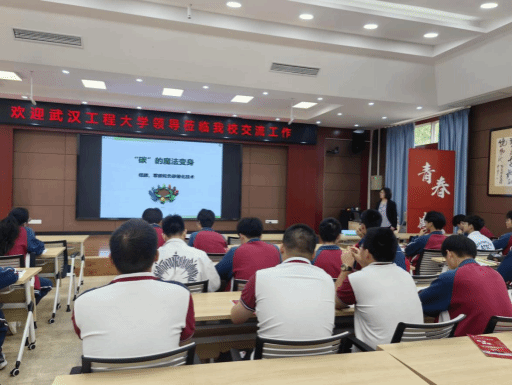 江学良一行与吴家山中学的校领导、高三年级班主任召开了座谈会。会上,吴家山中学校长朱郧清对我校开展招生宣传和教授科普进高中活动表示热烈的欢迎,他表示自2021年以来,双方学校始终保持着密切的交流与合作,在人才共同培养上作出了成绩,希望未来双方能够进一步紧密联系,加强合作,努力为国家培养出更多优秀人才。江学良介绍了我校近年在吴家山中学的高考招生情况,对吴家山中学为我校源源不断输送高质量、优质生源表示衷心的感谢和高度的赞扬并向吴家山中学赠送喜报。随后江学良围绕“四强两优”从学校专业强、就业强、考研强、发展强、区位优、环境优六个方面详细介绍了学校办学历史、优势和特色。