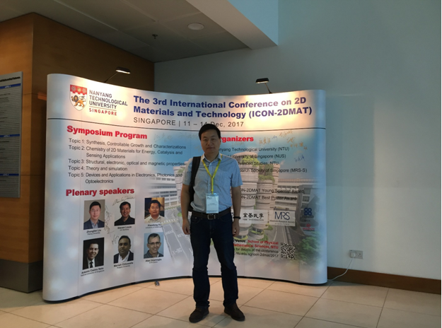 12月11日-15日,我院熊礼威副教授受会议组委会邀请,赴新加坡南洋理工大学参加第三届国际二维材料与技术会议,并作了题为“Wafer-Scale Synthesis and Perfect Transfer of High-Quality Atomically Thin TMDC Films”的报告。