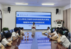 陈绪兵在致辞中对全体营员的到来表示热烈欢迎。他简要介绍了学校的改革与发展历程,着重强调了学校在化工制药与材料科学领域所取得的成绩,包括技术创新、应用实践等方面。他指出,这些成绩是学校师生共同努力的结果,也是学校持续推动教育教学改革、提升科研创新能力的体现。他鼓励营员们珍惜此次宝贵的学习机会,积极参与学术研讨与实践活动,深入了解化工制药与材料领域的前沿动态与发展趋势,努力提升自己的专业素养和综合能力,为未来发展打下坚实的基础。江学良为营员们授旗。