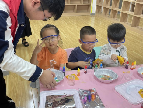 本次活动精心设计了一系列富有创意的实验项目,包括“新魔法变色”、“牛奶动画”、“彩虹摩天轮”及“色素扩散”,旨在通过直观且有趣的方式展现科学原理,引导孩子们步入科学的奇妙世界。