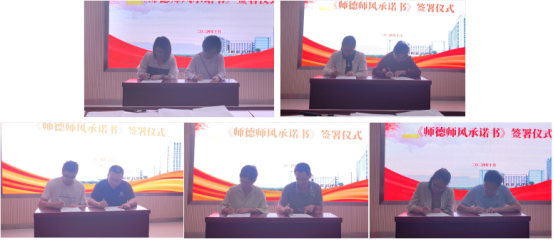 为进一步加强师德师风建设,弘扬教育家精神。江学良在会上通报了OA上公布的“省纪委监委通报8起群众身边不正之风和腐败问题典型案例”和教育部网站“违反高校教师职业行为十项准则典型案例”,通过鲜活案例开展师德师风警示教育,并带领全院教职工重温“教师誓词”,最后,各系教师代表在会上郑重签订了《师德师风责任书》。这份责任书不仅是对教师个人行为的约束,也是对教师职业操守的郑重承诺。会上还听取了与会党员对学院党风廉政工作开展的意见建议,总结讨论了学院2024年党风廉政建设状况。