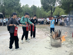 讲座结束后,王老师引导大家来到空地进行实地演习。在操场上,同学们亲自参与了隔火布隔绝空气、灭火器实操使用等项目。多组实操练习让同学们切实掌握了灭火器的使用方法,提高了应对火灾的实际操作能力。