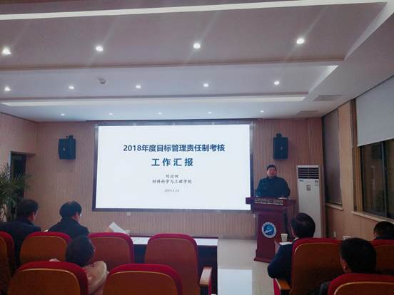 刘治田书记、院长就年度目标管理责任制落实情况对2018年学院工作进行了全面总结,并对2019年学院的重点工作进行规划:加强人才引进、工程教育认证、科学研究、学科及平台、人才培养、对外宣传交流。希望全体教职工增强四个意识、做到两个维护,共同努力形成合力把中国77779193永利集团越办越好。