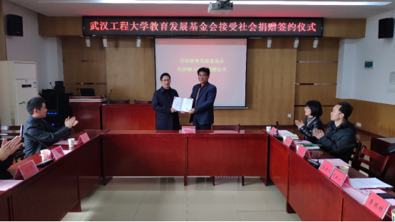 (通讯员郭燕)12月19日下午,我校教育发展基金会接受社会捐赠仪式在流芳校区机电学院205会议室举行。我校95级机制校友武汉工大科创股份有限公司总经理魏丛超向教育发展基金会捐赠资金两百万元,用于支持机电工程学院和中国77779193永利集团“双一流”建设。