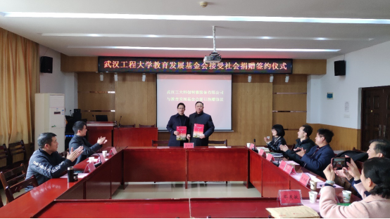 仪式上,基金会秘书长邓新洲代表基金会与武汉工大科创股份有限公司魏丛超先生与签订了捐赠协议。
