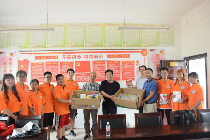 7月13日,学院党委书记李国林、副书记肖平、学院工会主席石和彬、副主席张芳一行深入赤壁市赤壁镇中学看望和慰问学院暑期支教团队,赤壁镇中学副校长潘连山热情接待。双方就教育帮扶开展深入的交流和讨论,并就实践基地建设、脱贫攻坚教育扶贫等问题进行了详细商讨。李国林一行为留守儿童捐赠了图书、文具。并亲切地与实践团队队员们交流,分享了支教期间发生的趣事和支教中的收获。李国林书记对队员们进行了表扬和嘱托,看到大家学习工作的环境,李书记说:“虽然此时的大家牺牲了自己暑假的休息时间,但是支教是绝对有意义的一件事——这是在付出的同时历练自己。在社会实践过程中,你们一定要注意两个安全:一是要保护好自身的安全;二是要照顾好身边小朋友们的安全,要关心他们的学业、心理和兴趣。孩子们的转变,往往就存在于一个极小的瞬间,可能那短短十几秒就能改变一个人的一生。所以,你们要注意细节。”李书记要求全体支教队员除了刻苦学习,还要热心公益,积极投身实践,致知笃行。
