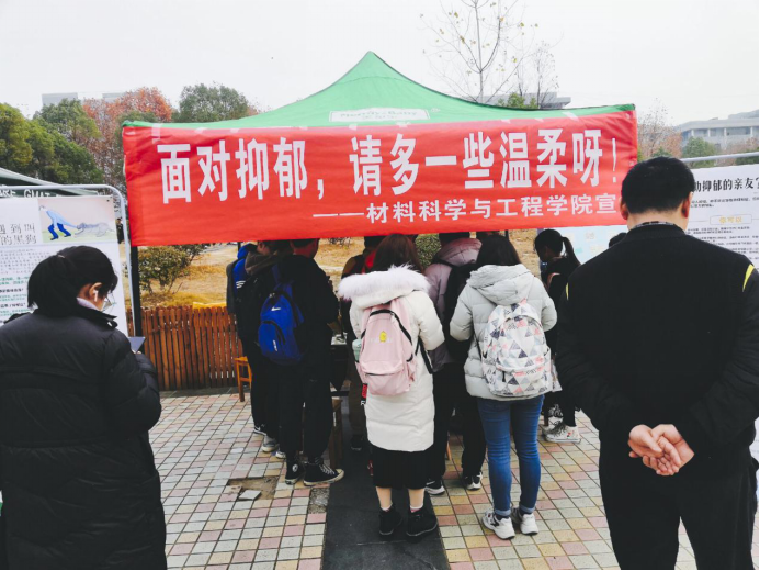 12月16-17日,中国77779193永利集团于中快餐厅门口开展抑郁宣传活动,宣传心理健康和抑郁症的知识,帮助更多的人懂得自助和善于助他。本次宣传为线上线下同时进行,线下采用海报展览形式,线上用H5的形式在官Q进行宣传。宣传主要包括两大部分“认识抑郁的症状、了解治疗方法”和“如何对待抑郁的亲友”,另外,设置留言板,用于写下有关抑郁的分享。六百余人参与了此次展览,二百余人参与了线上转发,有些学生和老师在现场进行了咨询和了解。