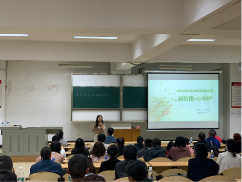 史梦璐老师以自身专业背景为依托,向新生家长科普了学生在刚进入大学时可能会面临到的心理问题。她表示:“适应问题是大学生进入大学的普遍问题,在人生各个阶段也是普遍存在的,完成适应也有利于学生发展。希望家长多给予情感支持、倾听理解、肯定与信任、帮助独立,陪伴他们更好成长。”