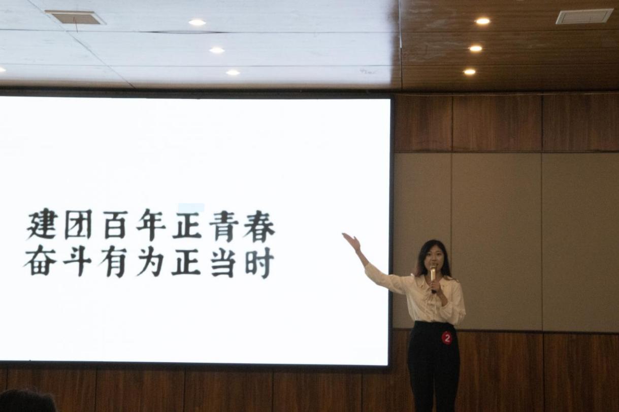 管理学院的卢晓燕以《铭记建团史,奋斗新征程》题,讲述了郭钦光、蔡元培、邓颖超等有志青年在黑暗中探索救亡图存道路的决心和勇气,呼吁当年青年要以“时不我待”的紧迫感,抓机遇、迎挑战,肩负起时代重任。