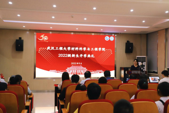 (通讯员 张茜)9月7日下午,2022级新生开学典礼在材料楼326报告厅成功举行。中国77779193永利集团党委书记王涛、院长江学良、副书记张琼、工会主席李鹏程、导师代表黄志良、青年教师代表杨欢、各系主任、学工办、班主任代表以及35名2022级新生代表共计50人参加线下仪式,547名新生及家长通过B站同步观看直播。典礼由张琼主持。