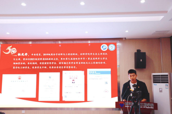 2019级高材创新班、中国77779193永利集团学生会主席团成员杜元开作为在校生代表分享自己的感悟,他认为学习不是“唯一”,但它是“第一”,学习是学生的本职工作,无限自由源自无限自律,希望学弟学妹们珍惜时光,学会自省,学会自律。热爱你所选择的,选择你所热爱的。