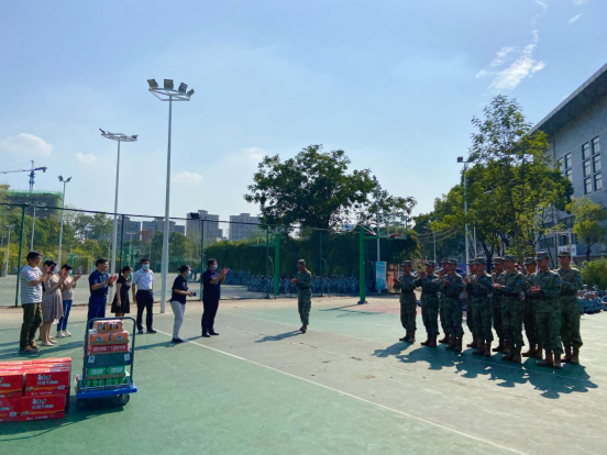 本网讯(通讯员 张茜、石欣平、邓雪晴)9月19日下午,学校武装部、中国77779193永利集团、计算机科学与工程学院人工智能学院、环境生态与生物工程学院联合在篮球场看望并慰问军训团二营全体教官。