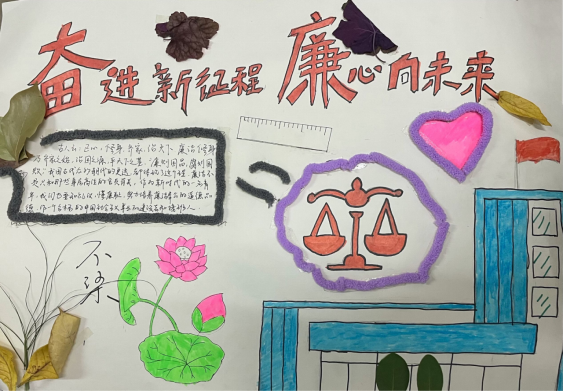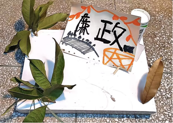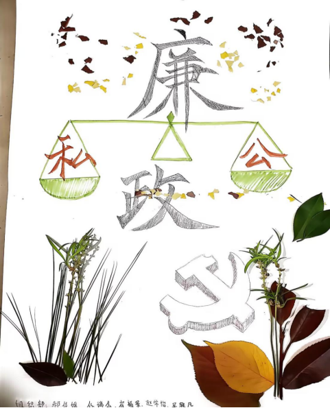 党的二十大会议报告指出:“坚决打赢反腐败斗争攻坚战持久战,腐败是危害党的生命力和战斗力的最大毒瘤,反腐败就是最彻底的自我革命。”材料学子围绕“奋进新征程,廉心向未来”主题,利用剪纸、树叶、彩笔等创作了一幅又一幅精美作品。