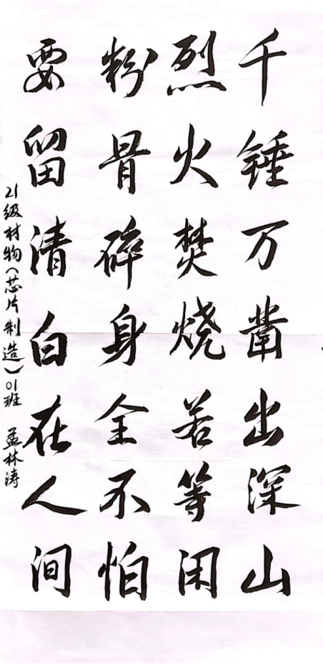 2019级材物01班王愉瑾、2021级材物芯片制造01班孟林涛、2022级高材2班祝洋三位同学通过书法艺术形式将廉政文化生动、形象的展示出来,充分彰显了倡导尚德昭廉、弘扬清风正气的精神涵养。一句句廉政格言既发人深省,又寓意深远。