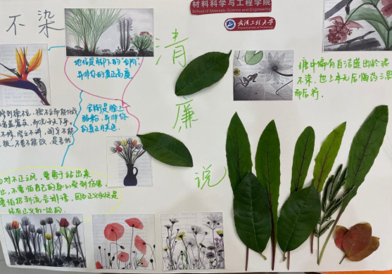 廉洁显党性,奉献见精神。贪如火,不遏则燎原;欲如水,不遏则滔天。作品中的松竹梅,岁寒三友,隐喻着“廉正清,为官三要”。清正在德,廉洁在志。希望当代大学生在“廉政文化”的熏陶下,做一个正直的、甘于奉献的人。