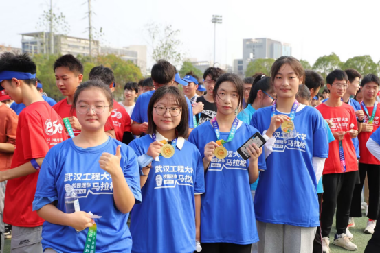 跑完迷你马拉松,同学们戴上奖牌,拍照留念,每个人的脸上都洋溢着青春的笑脸!