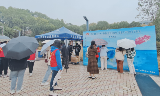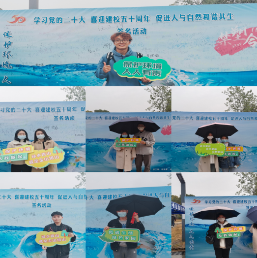 活动现场,师生积极踊跃参与签名活动,“喜迎校庆50周年”塑料袋深受大家的欢迎,郑华明及其团队成员现场讲解塑料袋制作过程和原理,通过宣讲国家的“限塑令”、对比可降解塑料袋和传统塑料袋对自然环境的不同影响,引导大家合理使用可降解塑料袋,提高学校师生环境保护意识。