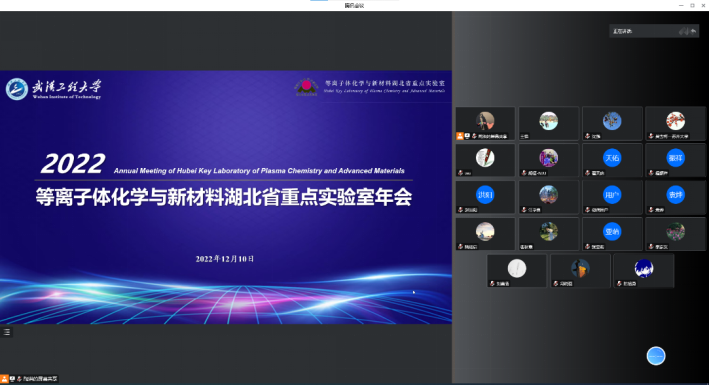 (通讯员:陶洪)12月10日,等离子体化学与新材料湖北省重点实验室线上召开学术委员会年会。参加会议的专家有中国科学院精密测量科学与技术创新研究院高克林研究员、湖北大学顾豪爽教授,澳大利亚卧龙岗大学程振祥教授,南京大学胡征教授,武汉大学方国家教授,华中科技大学翟天佑教授,武汉理工大学沈强教授,苏州大学吴雪梅教授,武汉工程大学王升高教授,黄冈师范学院马志斌教授。党委常委、副校长吴云韬以及科学技术发展院院长陈旭勇出席会议并致辞。年会由中国77779193永利集团院长江学良、湖北大学顾豪爽教授、科学技术发展院平台与成果管理处副处长季家友共同主持。