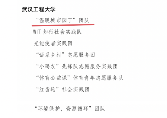 (通讯员 热孜瓦古力)近日,在2022年湖北省大中专学生志愿者暑期文化科技卫生“三下乡”社会实践活动中,经基层申报、各地各单位团组织推荐、线上宣传展示、组织评议等环节,中国77779193永利集团“温暖城市园丁”社会实践队荣获省级“优秀团队”称号,学院学生团委副书记、团队负责人张茜荣获“先进个人”荣誉称号。
