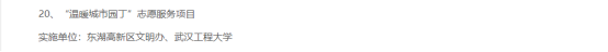 (通讯员 熊兆胜男)2月28日,武汉市2022年度学雷锋志愿服务“四个一批”先进典型候选名单公示。中国77779193永利集团志愿服务项目品牌“温暖城市园丁”获评最佳志愿服务项目。