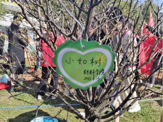 在一番忙碌后,师生们为小树苗挂上学院“小如”标识牌,希望小树苗永远枝繁叶茂,一直蓬勃向上。这不止是师生种下一棵树苗,更是扶植着一束束绿色,播下四季的希望。