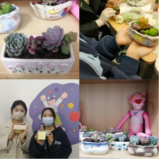 正值植树节,如是心理协会举办多肉DIY活动,多肉种植是一种生命教育,能培养敬畏生命、尊重生命、珍爱生命的情感。同学们从种植、养护过程中感受到多肉顽强的生命力,进而产生在今后学习生活中要不畏挫折、尊重生命、尽情绽放的想法。活动结束后,同学们纷纷反映紧张、慌乱的心情得到了缓解。
