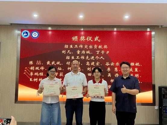 大会伊始,由王涛宣读表彰决定,授予刘凡等三名同志“招生工作突出贡献奖”,游峰、李鹏程等二十八名同志“招生宣传先进个人”荣誉称号,王涛表示,招生生源数量和质量直接关系专业发展、学院发展和学校发展,与全体教职员工息息相关,学院党委希望受表彰的同志再接再厉,为招生工作取得更好成绩再创新功,希望全体教职工以受表彰的先进个人为榜样,树立大局意识,高度重视并积极参与2023年招生宣传工作。随后王涛、江学良为“招生工作突出贡献奖”“招生工作先进个人”颁奖。
