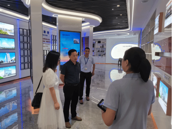 三赢兴光电科技股份有限公司党委第一书记刘建斌、人力资源与行政管理服务部经理毛冬飞、招聘专员凡慧敏热情接待了张琼一行,并一同参观了公司办公楼一楼展厅的文化墙、产品陈列柜、专利墙、荣誉墙和COB、TPD生产中心。在参观过程中,刘书记为大家详细介绍了公司的发展历程、企业文化、科研能力以及发展前景。
