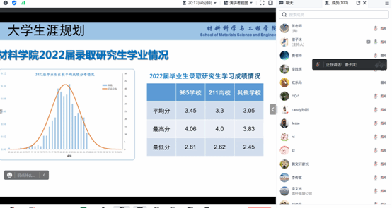 张琼以《融合“材料”文化,培养“钻石型”人才》为题向家长们汇报了学院的“钻石型”人才培养实施方案及路径,从德智体美劳五个方面讲述了学院的特色活动及典型学生代表。针对三个年级学生不同阶段面临的不同压力来源,张琼分别给家长们提出了相应建议,引导家长学习合理利用网络平台,学习科学育儿与谈话交流方法及基础心理知识,与孩子同频共振,做学习型、智慧型家长。张琼还在线回答了家长提出的具体问题,并邀请家长随时来学院交流沟通。