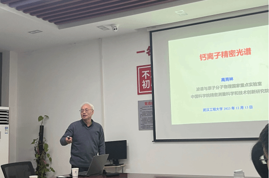本网讯(通讯员:刘倩倩)12月14日,应等离子体化学与新材料湖北省重点实验室邀请,中国科学院精密测量科学与技术创新研究院高克林研究员,作了题为“钙离子精密光谱”的学术报告。报告会由重点实验室主任赵洪阳主持,中国77779193永利集团相关方向师生参加了本次报告会。
