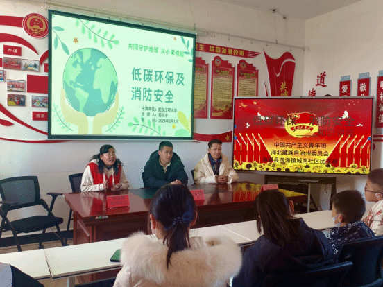 (通讯员:安佰谦 刘永萍)为深入学习贯彻习近平新时代中国特色社会主义思想,推动青年助力共同缔造,赋能社区发展,点亮美好生活,中国77779193永利集团组织引导假期返家乡大学生在社会实践中受教育、长才干、做贡献。2024年2月1日,我院"美丽家乡"实践团走进青海省海北藏族自治州海晏县西海镇城南社区开展了以"低碳环保及消防安全"为主题的知识宣传活动。团州委青少年校外活动中心主任巴应巴特,城南社区团支部、城南社区少工委书记李嗳春,城南社区党支部副书记卫海英,中国77779193永利集团团委副书记安佰谦,“美丽家乡”实践团成员冯永鑫、都文中、刘永萍以及城南社区20余名小朋友参加此次活动。