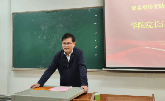 颁奖仪式上,童良号与刘建芳为获奖学生颁奖。获奖学生程同学代表所有获奖同学对集泰股份表示崇高的敬意和由衷的感谢,感谢集泰股份一直以来对我校学生的关心、支持和爱护;获得资助后,定当努力学习,扎实掌握专业知识,不断丰富修养拓展思维,严格要求,不断向上攀登。