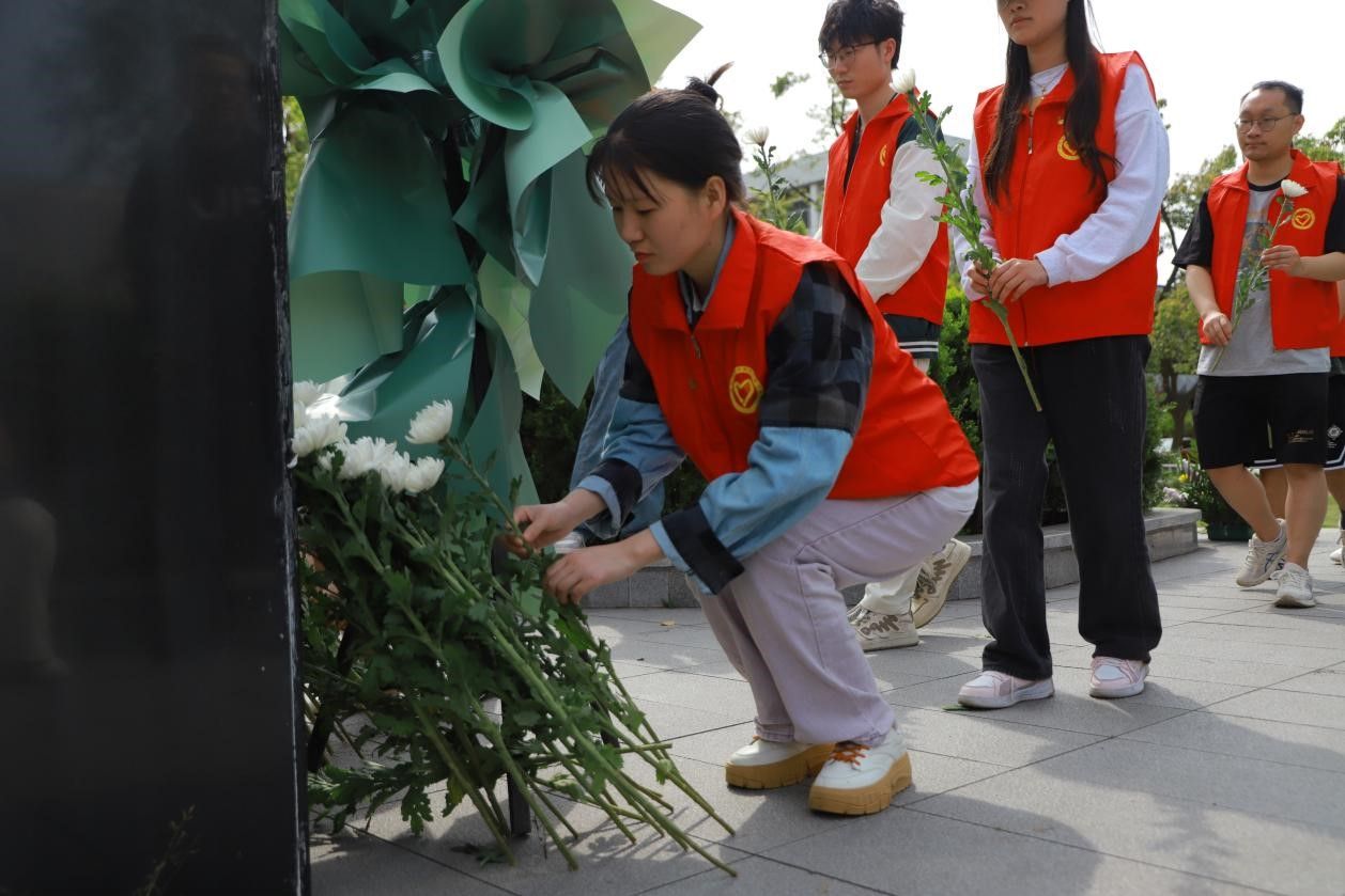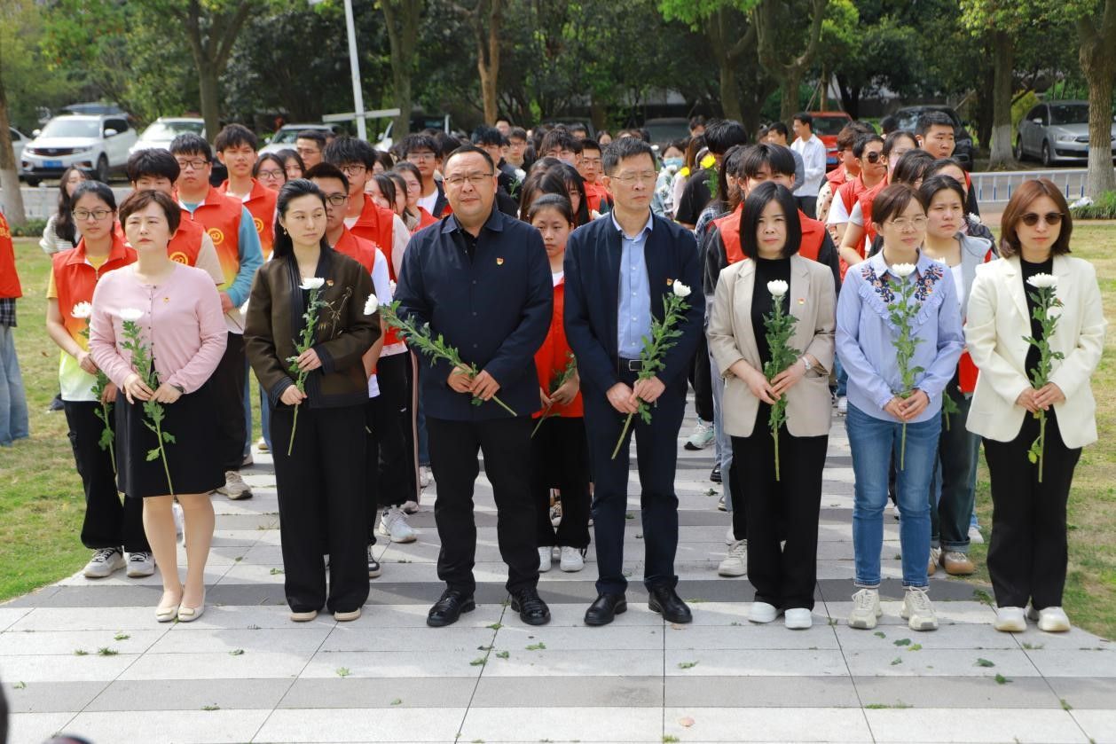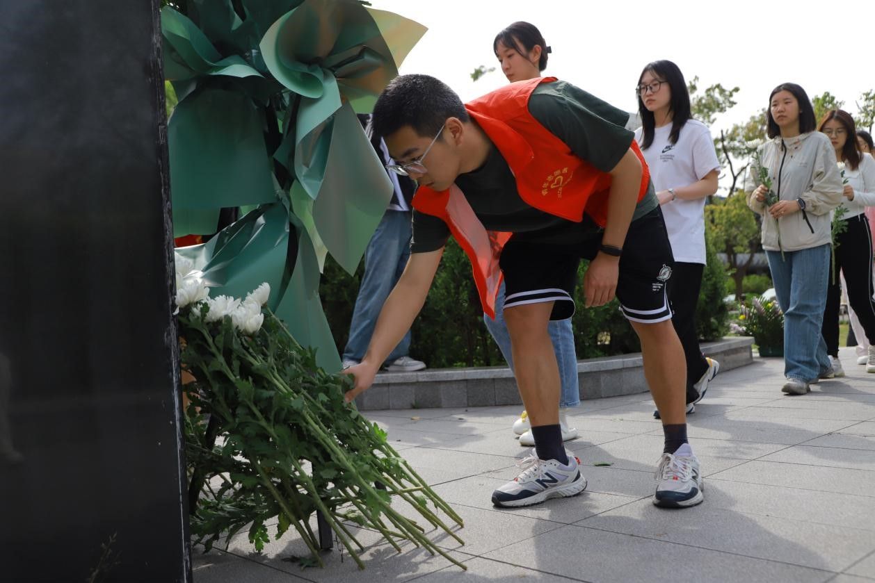 许志伟党员示范班、许志伟志愿服务队学生代表向许志伟同志敬献花篮,全体师生行默哀礼,并依次敬献菊花,表达对许志伟英雄的深切缅怀与哀思。