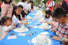 在活动中,手工DIY环节最受小朋友的欢迎。普通的草帽在小朋友的奇思妙想下完成了华丽的转身,不同的色彩在他们的笔下总是能构成令人惊喜的佳作。家长、孩子一同参与制作的方式,让孩子与父母有了更多交流陪伴的时间,让本次活动更加温暖。